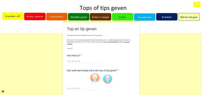 In de loop van de jaren werd ook steeds duidelijker dat vastleggen van groei die voornamelijk op zelfreflectie bestaat een groot gevaar in zich heeft: namelijk vrijblijvendheid. En als we één ding zeker bij deze diepe denkers moeten vermijden is vrijblijvendheid! Die vrijblijvendheid is te voorkomen door bij het vastleggen van de groei vooral uit te gaan van feedback. Dat heeft nog een ander voordeel: als je vooral uitgaat van reflectie blijft de blinde vlek vaak de blinde vlek en blijft onbewust onbekwaam bewust onbekwaam. Maar feedback geven is natuurlijk wel lastiger te organiseren en duurzaam vast te leggen. Hiermee zijn we sinds 2017 bij de Dolfijnklassen, de DubbelKlik klassen en het Athena onderwijs aan het experimenteren. De voorlopige resultaat is een Socrative en Google-formulier: zie hieronder en bekijk het met deze link. Voor meer informatie mail me: jan@talent3xl.nl
